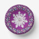 Snowflake with my drawing of a stained glass window from an old European church: a rose window, with touches of a wide variety of colours, including shades of cardinal red and pink, on a cardinal red background. Inlay of white rhinestones (drawn). For an old times winter pattern. This motif is also available in navy blue in my “blue rosace” collections.