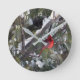 Cardinal Snow Pine Tree Photo Round Clock