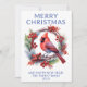 Cardinal Wreath for Christmas card in blue for a festive Holiday greeting to family and friends.