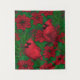 Hand-drawn Christmas pattern with cardinal birds, poinsettia flowers, winter berries, and fir branches