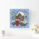 Cardinals Christmas Feast Blue Square Wall Clock