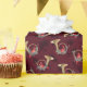 Cardinals Perched In Gold Christmas Horns Burgundy Wrapping Paper