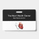 Insignes de nom médical classique modèle d'un cardiologue dans un centre de soins cardiaques, un hôpital ou une salle d'urgence. Créé avec un design simple et moderne de deux côtés avec espace de nom pour votre entreprise et personnel médical conçu avec un symbole cardiaque et stéthoscope. Présenté avec la pièce jointe, mais aussi disponible avec des lanyards. Un style économique.
