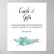 This beautiful wedding sign is a nice compliment to the table where cards and gifts are collected at the reception. The design features a combination of black handwritten and block fonts with a lovely green succulent accent.