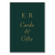 Guide your guests with elegance using our Cards & Gifts Emerald Green Monogram Table Sign. Against a calming emerald green background, sleek monograms in white adorn this sign, seamlessly directing guests to the designated cards and gifts area. This sign adds a touch of sophistication to your event decor.