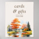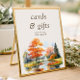 Fall Lake sign for your cards & gifts table at your wedding or bridal shower. Rustic country, scenic watercolor design with lakeside scene featuring woodsy parkland with greenery and beautiful trees with autumn foliage. Easy to personalize with your custom sentiment and names. If you want to change the background border colour, click to customize with the design tool. If you would like matching products, please browse my Fall Lake collection.