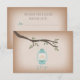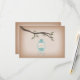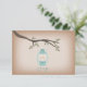 An outdoors wedding r.s.v.p. featuring an illustration of a light blue lantern hanging from a tree branch with green leaves. Background is card stock inspired.