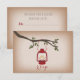 An outdoors wedding r.s.v.p. featuring an illustration of a red camping lantern hanging from a tree branch with green leaves. Background is card stock inspired.