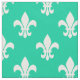 Caribbean Green, White Fleur De Lis Pattern Fabric