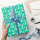 Caribbean Green White Nautical Anchors Pattern Wrapping Paper