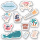 The stickers include cloud with customizable name, skull and crossbones, pirate ship, treasure chest, crab, whale, etc.
