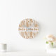 Caribbean Tribal Mudcloth: White, Gold Round Clock