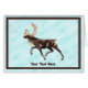 Un caribou mignon, ou renne (Rangifer tarandus), dans le style de l'art populaire, superposé sur une image arrière - plan enneigée. Customisez en ajoutant votre propre texte. Vous pouvez supprimer la bordure et modifier la couleur et la police du texte.