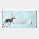 Un caribou mignon, ou renne (Rangifer tarandus), dans le style de l'art populaire, superposé sur une image arrière - plan enneigée. Customisez en ajoutant votre propre texte.