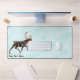 Un caribou mignon, ou renne (Rangifer tarandus), dans le style de l'art populaire, superposé sur une image de fond enneigée. Personnalisez en ajoutant votre propre texte.