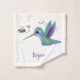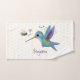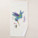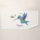 Ce joli design présente un colibri vert et violet heureux avec un ami d'abeilles sur un arrière - plan de pois jaune. Le tout dans un joyeux style d'illustration de dessin animé !
