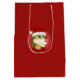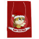 Sac cadeau avec une illustration d'un lion mignon avec casquette Père Noël rouge; décoration géniale pour les vacances de Noël, design de modèle modifiable avec champ personnalisé pour votre propre texte, illustré par Radka Kavalcova
