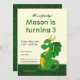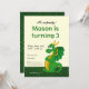Invitations de l'étiquette d'imaginaire avec illustration de dragon vert mignon; invitation d'anniversaire sur le thème de l' illustrée par Maxi Harmony