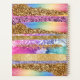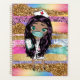 Un design saisissant, contemporain et coloré de fausse parties scintillant et feuille dans des bandes horizontales remplies des couleurs de l'arc-en-ciel forme un arrière - plan vibrant à une jolie caricature d'une infirmière afro-américaine tenant un porte - bloc. Elle porte un masque protecteur et porte une perruque de magenta foncé aux cheveux longs et à la mode. Ce sont des cadeaux parfaits pour les mères, les soeurs, les filles, les petites-filles, les nièces et les meilleurs amis qui travaillent à l'hôpital ou étudient pour devenir infirmières.