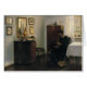 Carl Holsøe - Woman with Fruit Bowl, ca 1900 Holsøe målade i likhet med Vilhelm Hammershøi, som utövade and starkt inflytande på honom, övervägande interiörer med gamla möbler och enstaka figure. Hans torra, delikata pensel tolkar med sällsynt målerisk finhet de blida harmonierna i lugna tysta rum. This greeting card contains no text.