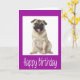 Envoyez un peu d'amour Carlin à vos amis et à votre famille. Cette carte d'anniversaire mignonne et joyeuse présente l'image d'un chien chiot carlin heureux mis en évidence contre un arrière - plan blanc immaculé avec une bordure violette vibrante. Verset intérieur de la carte : Meilleurs voeux pour votre anniversaire et tout au long de l'année à venir. Autres produits et cadeaux de carlin que vous pouvez apprécier... com