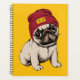 Ce design présente un joli carlin hipster chiot dans un casquette beanie rouge.
