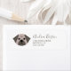 Une étiquette d'adresse de retour simple avec une illustration vectorielle de carlin mignonne. Personnalisez-le avec votre nom et vos coordonnées.