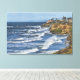 Waves pound the shoreline on the coast near Carlsbad, California.