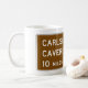 A road sign for Carlsbad caverns 10 miles. This design looks really effective on these Mug