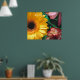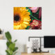 Botanical themed Poster featuring a photo of colourful bunch of flowers: yellow gerbera and striped white red carnations symbolizing devotion, love and fascination. Glamourous optimistic design. Stylish gift for any special occasion (Saint Valentine's Day, Mother's day, Grandparents Day, birthday), glamourous accent to your home decor. You can delete the text "It's going to be sunny" or replace it with your own message (click "Personalize this template").