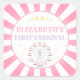 Venez un, venez tous ! Merci à tous d'être venus à la plus grande fête d'anniversaire sous le grand chapiteau avec nos modèles étiquettes ronds du carnaval pastel. Ce étiquette de fête de carnaval de cirque présente un arrière - plan de tente de cirque rose avec Ferris Wheel rose et violet sur un design étiquette rond.