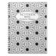 Carnet en noir et blanc avec une élégante, presque dentelle, motif avec des fleurs. Les trois zones avec du texte peuvent être customisées ainsi que le cadre ovale.