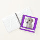 Ce mini portable à spirale personnalisé avec votre choix de huit types de papier différents (alignés ou non) est un excellent moyen de garder une trace de tout et de tout ce qui concerne votre animal de compagnie. Notes de l'éleveur, dossiers médicaux, rendez-vous et visites terminés, dossiers de spectacles, notes, heures, prix, distinctions honorifiques et reconnaissance ... vous pouvez tout mettre ici dans ce journal qui vous permet de montrer votre chien tout en restant organisé. Vous pouvez choisir n'importe quelle couleur arrière - plan (illustrée ici en violet vif) que vous souhaitez pour les couvertures avant et arrière. Entièrement personnalisable avec vos propres photos et texte pour un livre d'enregistrement vraiment personnalisé. Considérez une couleur différente pour chaque compagnon de fourrure.