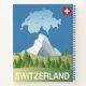 Ce design présente les Alpes suisses sur une affiche de voyage.