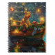 Jetez un coup d'oeil à la magie de la saison des Fêtes avec cette illustration magnifiquement détaillée, montrant un chien fier assis dans un bateau à la décoration festive, glissant à travers un lac serein de Noël. Les lumières scintillantes des pins voisins se reflètent dans l'eau, projetant une lumière chaude et festive qui renforce l'ambiance cosy. Des ornements pendent des côtés du bateau, tandis que des lanternes brillantes éclairent le chemin, créant une scène qui capture l'essence véritable de la chaleur et de la joie de Noël. Cette oeuvre nostalgique apporte une touche de magie de vacances à tout espace, parfait pour ceux qui chérissent l'esprit de la saison.