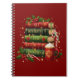 Festive "All booked for Christmas" stacked books with lights, holly, candy canes and hot chocolate graphic design.