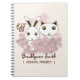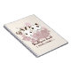 La conception du produit présente un lapin et un chaton adorables tenant des fleurs roses. Ce dessin animé d'animaux mignons crée des cahiers uniques et personnalisés avec un texte personnalisé pour l'école.
