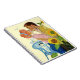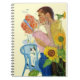 Artiste : Dame rousse de Bernard D'Andrea | embrassant l'homme derrière des tournesols avec une chaise bleue et un chat.