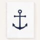 Notebook minimaliste moderne avec ancre bleu marine sur arrière - plan blanc.