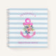 Ce bloc-notes élégant est doté d'une ancre nautique rose vif et branchée décorée de fleurs d'aquarelle. L'arrière - plan est composé de rayures bleues et blanches douces, et la couverture arrière du bloc-notes a un aspect rose assorti. Les bandes sont via Indie Grace designs.