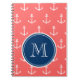 Corail nautique et de très bon goût et motif blanc d'ancres avec votre initiale dans une police moderne, sur un étiquette de cercle de bleu marine, bannière, cadre avec séparateur de lignes circulaires blancs. GraphicsByMimi© moderne, motif mignon et à la mode d'ancre que vous pouvez personnaliser avec votre monogramme pour elle. Employez le gisement de modèle pour ajouter votre initiale de monogramme ou pour marquer avec des lettres ou choisir la "personnaliser il" pour plus d'options de édition comme ajouter votre nom, texte ou la photo pour faire vos propres, unique, personnalisé, un-de-un-aimable conçoivent en fonction du client. Autre colore disponible.