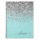 Aqua Blue - Turquoise et Silver Sparkle Parties scintillant Script Monogramme Nom Spiral Notebook Planner. Cela rend le cadeau parfait pour 16 ans, mariage, douche nuptiale, anniversaire, baby shower ou bachelorette pour quelqu'un qui aime le luxe glam et les styles chic.