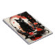 L'aquarelle noir portrait de chat splash art avec des fleurs rouges sur un arrière - plan rouge et noir.