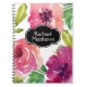 Un magnifique carnet motif couleur rose à l'aquarelle féminine dans les tons rose et violet, customisé avec votre nom. Remplacez l'exemple de texte affiché dans le modèle de conception par votre nom, monogramme ou autre texte. Pour modifier la police ou déplacer le texte, cliquez sur le bouton "customiser".