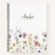 Choix féminin dans les carnets, ce design présente une rangée de fleurs sauvages aquarellés dans des teintes pastel douces de rose, bleu perwinkle, blanc cassé et jaune avec des tiges délicates et de la verdure. Un modèle texte est inclus pour personnaliser avec votre nom et votre initiale monogramme.