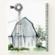 Aquarelle Grange I par Jennifer Paxton Parker. Grange de couleur gris-blanc avec verdure et petit moulin.