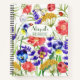 Nom personnalisé et texte grand carnet en spirale avec aquarelle brillante et joyeuse illustrations de papillons, coccinelles et fleurs de champs : lavandes, pansies, pavots, et plus encore.