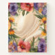 Un journal de jardin inspirant bordé de fleurs d'aquarelle richement colorées en rose profond, violet, or avec un arrière - plan de tan et crème une impression de peinture acrylique tourbée. L'avant et l'arrière sont assortis à un étiquette monogramme de l'avant avec une bordure double en lavande,