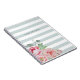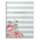 Le carnet floral moderne peony présente des rayures chic vert menthe pastel avec un bouquet de pivoines bleues et sauge qui fleurissent du coin. Personnalisez avec un nom, un monogramme ou un message en utilisant le champ fourni.