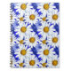 Carnet dans une aquarelle motif de marguerites blanches aux centres jaunes dorés, sur un arrière - plan dans les tons bleu denim